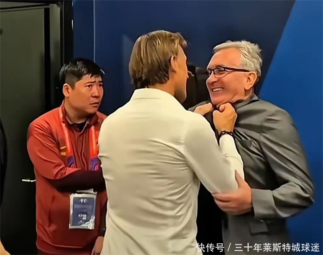 赛后发布会上,沙特主评释注解勒纳尔和中国评释注解伊万科维奇会面,勒纳尔终末用手拽住伊万的领子开打趣:“终末几轮也要保捏这场的强度!”伊万还有脸笑,而一旁的国足使命主说念主员彰着看懵了。