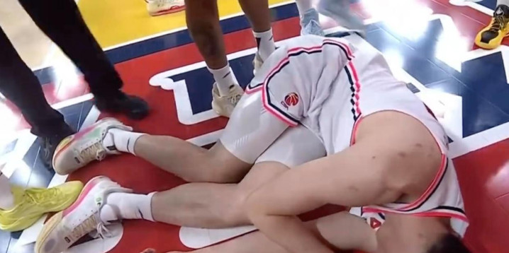比赛第四节还有7分钟时,两边比分101比101。广东男篮抢断后快速反击,但山西男篮的外助拉下了正在上篮的任骏飞。由于任骏飞在快速迁徙中,倏得被拉导致失去均衡,重重跌倒在地。