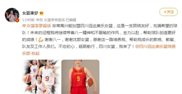 在盘曲多支球队后,李梦最终选拔了四川女篮。