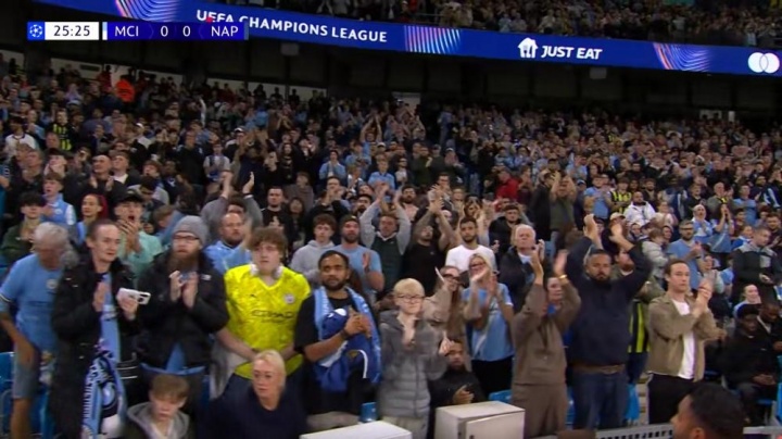 传闻👏丁丁26分钟被换下,曼城球迷起立饱读掌+呐喊德布劳内之歌体育录像/图片