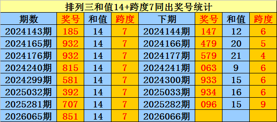 上期转头:罗列三第2026065期奖号:851。和值14体育最新信息,跨度7。