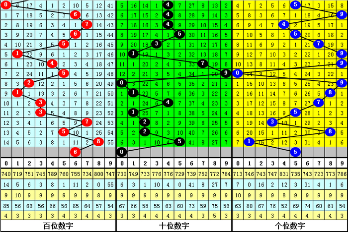 个位:0、1路号较热,本期防2路号反弹,温雅5。